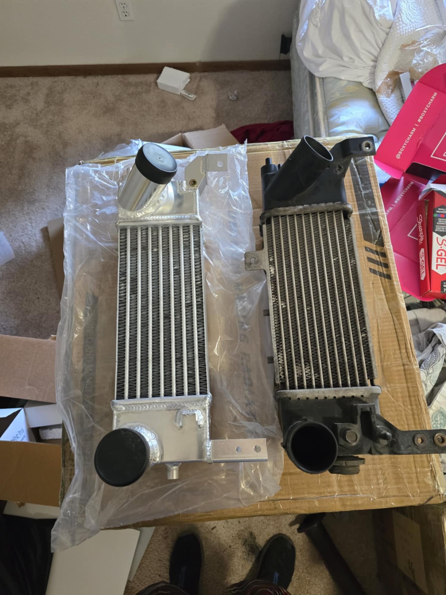 Upgrade your 2003 MazdaSpeed Protege's intercooler performance with our all-aluminum OEM side mount intercooler replacement. Unlike the original plastic tank design, our intercooler features a robust all-aluminum construction for improved durability and heat dissipation. This direct-fit replacement ensures seamless installation while providing enhanced cooling efficiency and increased boost pressure tolerance. Experience improved engine performance, reduced charge air temperatures, and increased reliability with our high-quality all-aluminum intercooler.